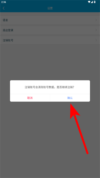 4、在彈出的確認提示框中,點擊確認,按提示完成后續(xù)操作即可注銷賬號。