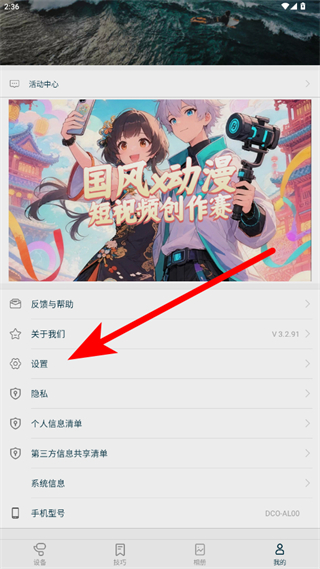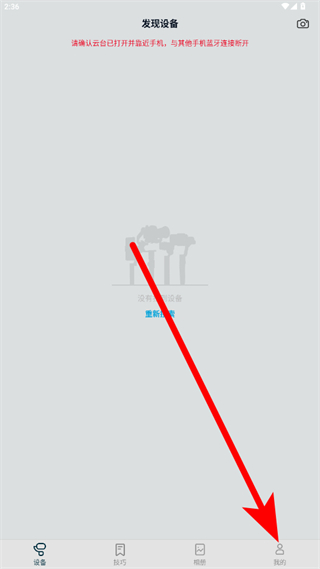 1、打開飛宇手持云臺軟件,點擊底部導(dǎo)航欄最右側(cè)我的選項。