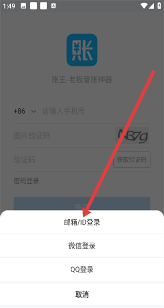 3、在登錄方式選擇菜單中,點(diǎn)擊郵箱/ID登錄選項(xiàng),進(jìn)入郵箱或ID登錄界面。