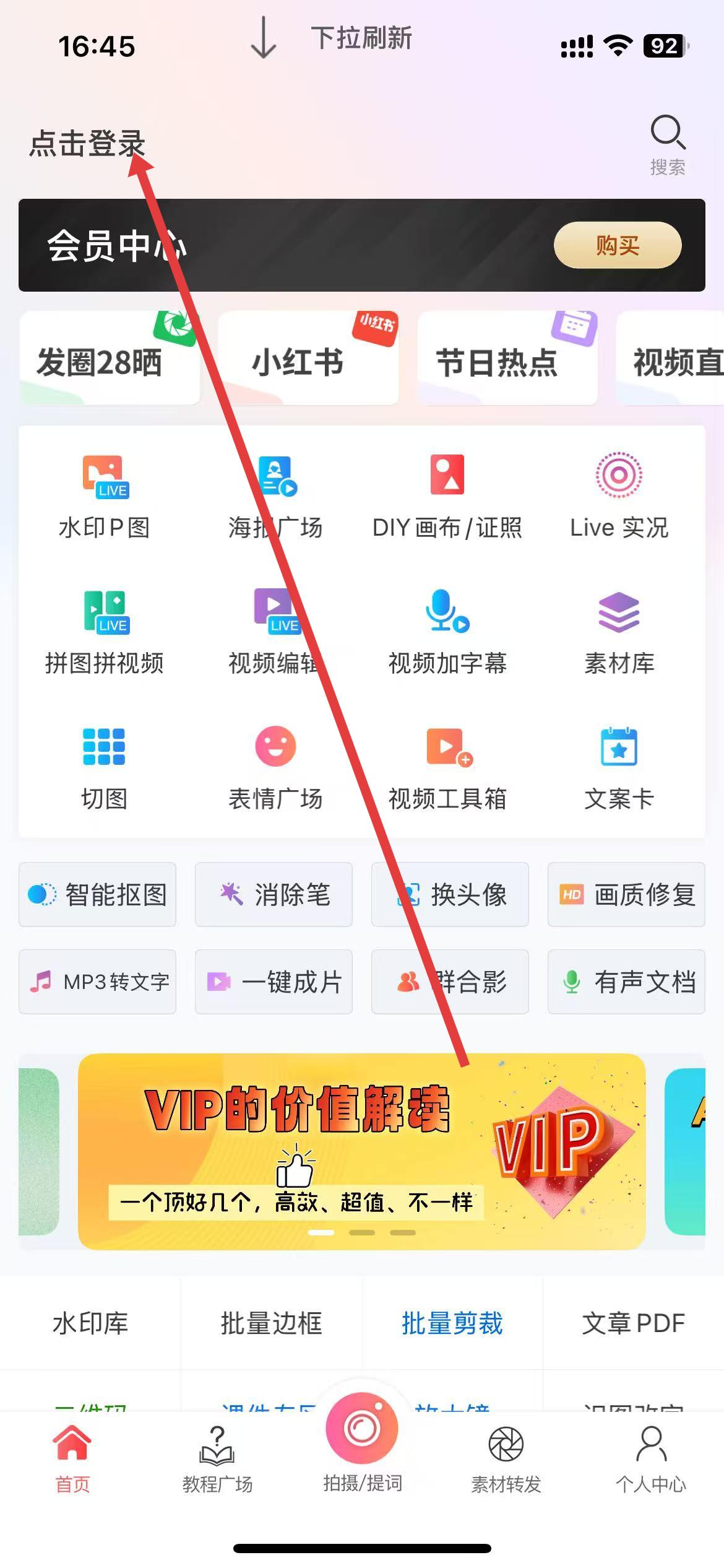 1、打開APP,在首頁左上角點擊點擊登錄按鈕。