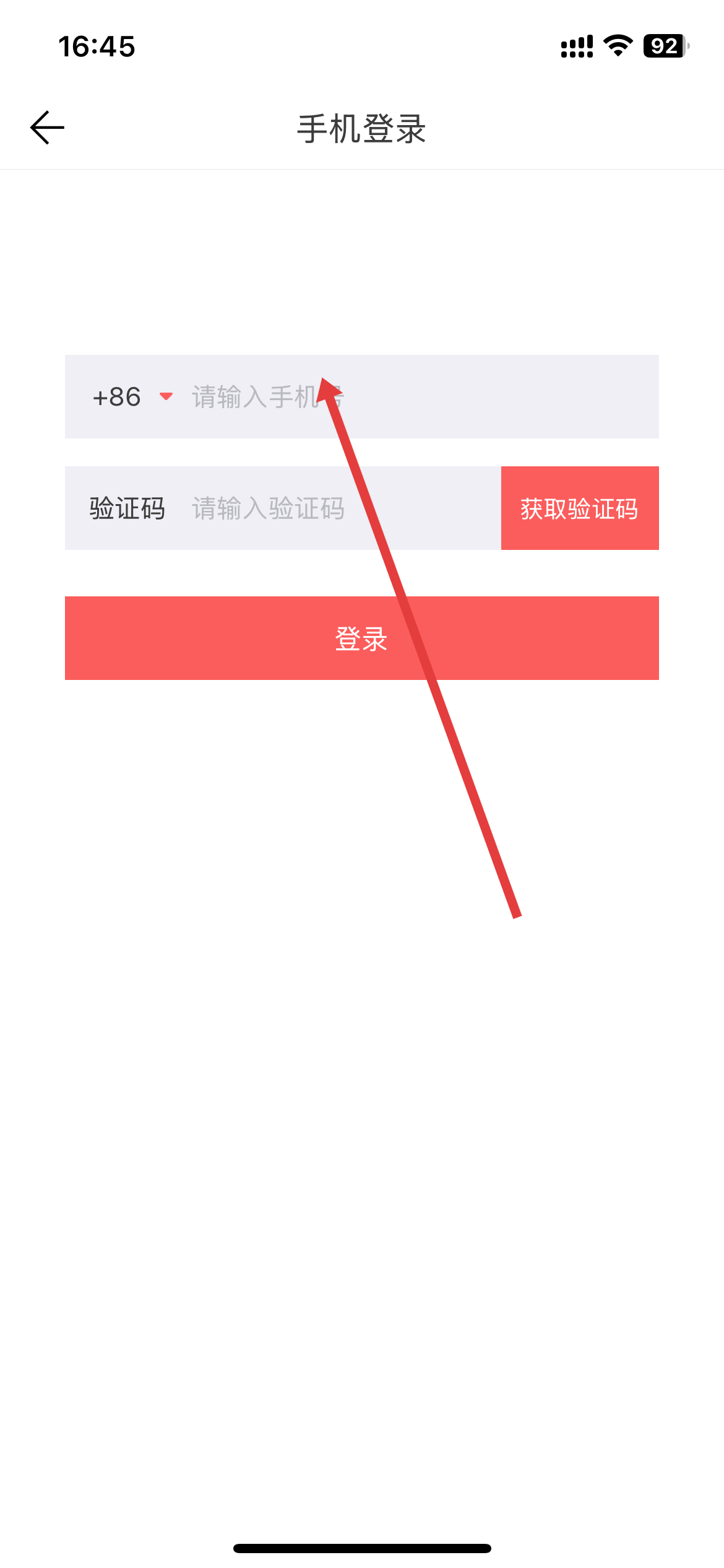 3、在手機登錄頁面,輸入需要登錄的手機號碼。
