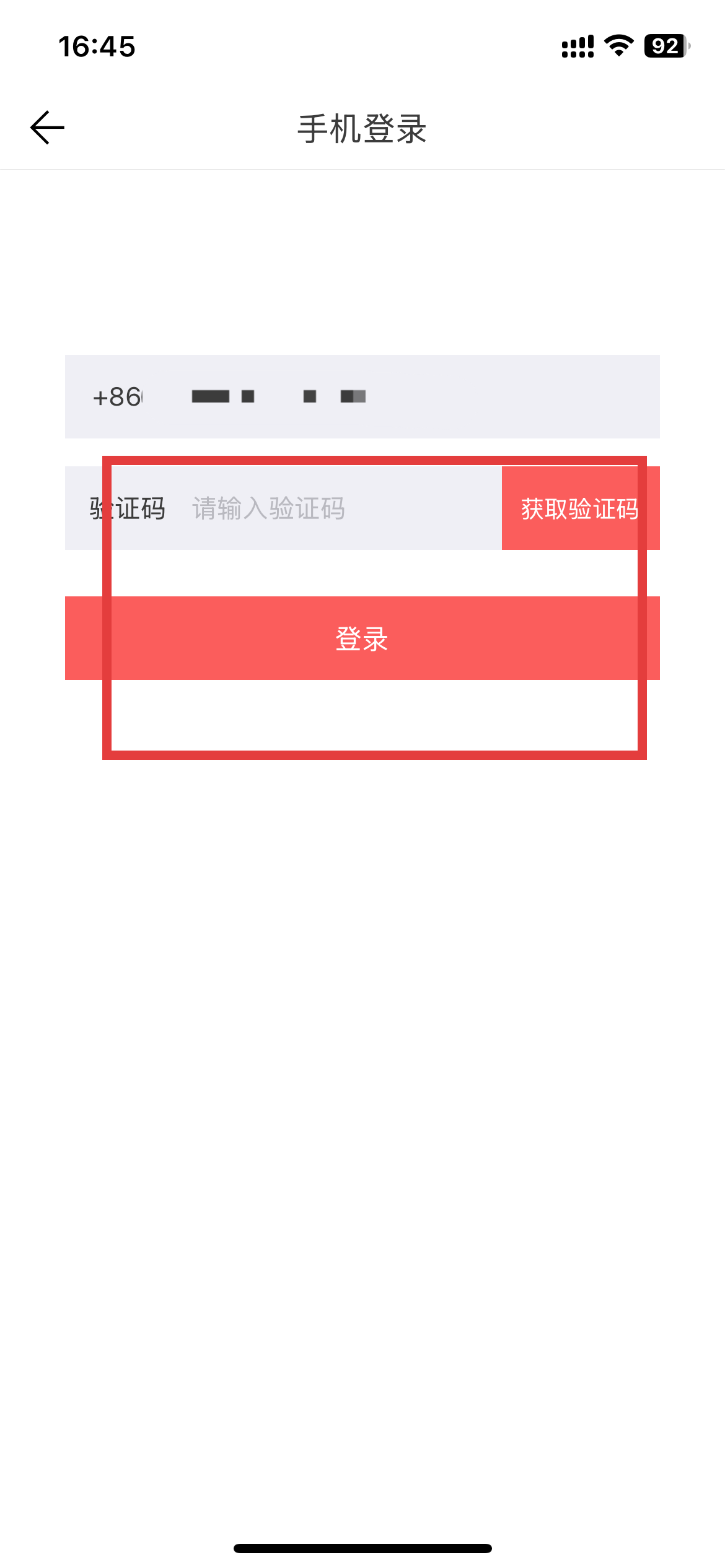 4、點擊獲取驗證碼按鈕并填寫,點擊登錄按鈕,即可完成賬號登錄。