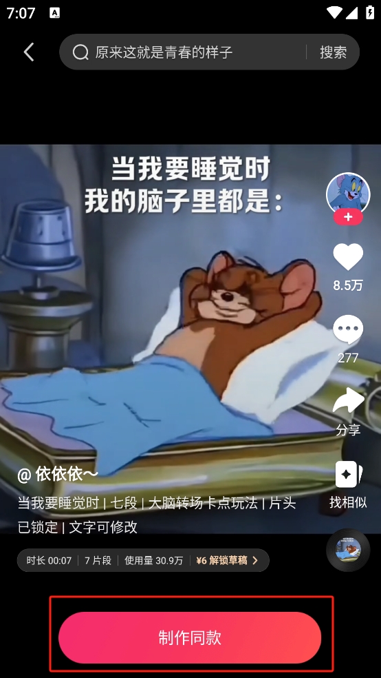 3、點(diǎn)擊制作同款就能夠快速的使用該模板進(jìn)行視頻的制作,使用起來也是非常的方便;