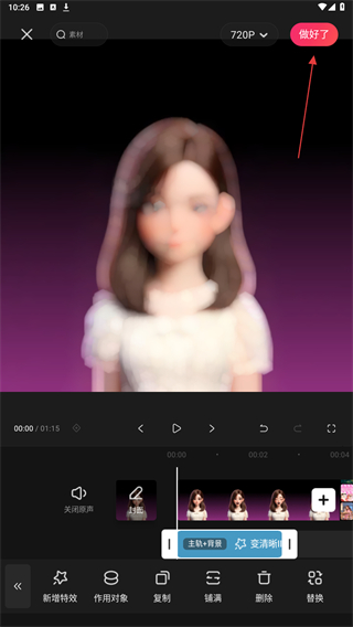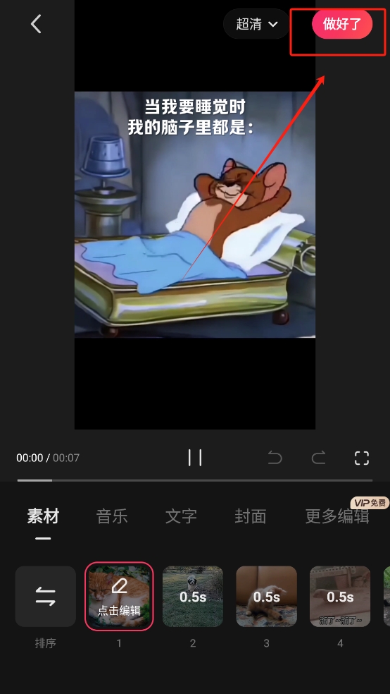 5、添加好畫面特效后,點(diǎn)擊右上方做好了即可導(dǎo)出。