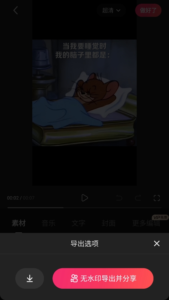 6、點(diǎn)擊做好了就能看到彈出的保存方式,支持直接下載保存或者無水印導(dǎo)出并分享。