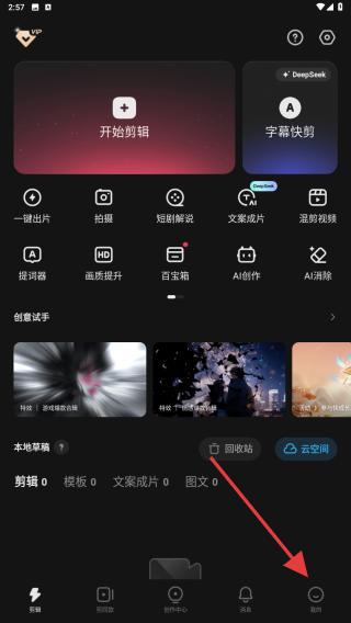1、啟動快影APP,點(diǎn)擊頁面右下角的我的功能圖標(biāo)即可跳轉(zhuǎn)至該頁面。