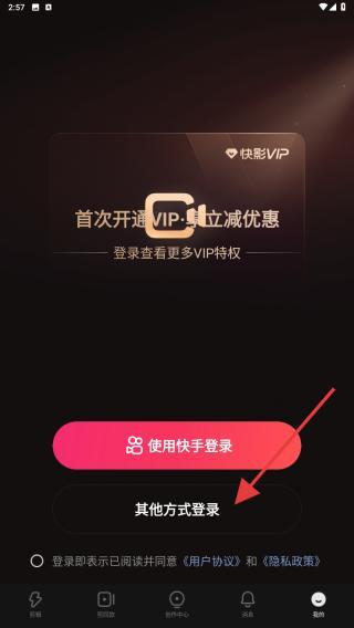 2、在登錄選項(xiàng)中,無快手的情況下可點(diǎn)擊其他方式登錄。