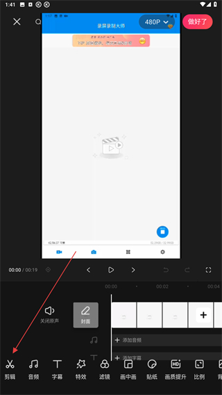3、進(jìn)入剪輯的界面內(nèi),點(diǎn)擊左下剪輯的功能按鈕。