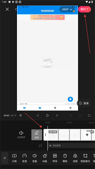 4、拖動視頻的進(jìn)度條后,點(diǎn)擊右上角選好了即可剪輯成功。