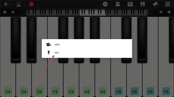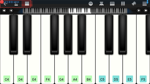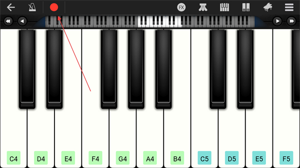 2、進(jìn)入鋼琴的頁(yè)面內(nèi),點(diǎn)擊上方錄音的功能按鈕。