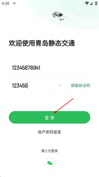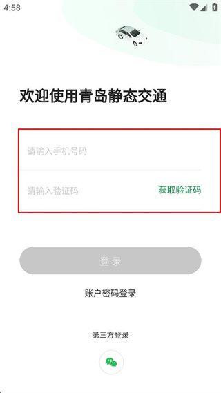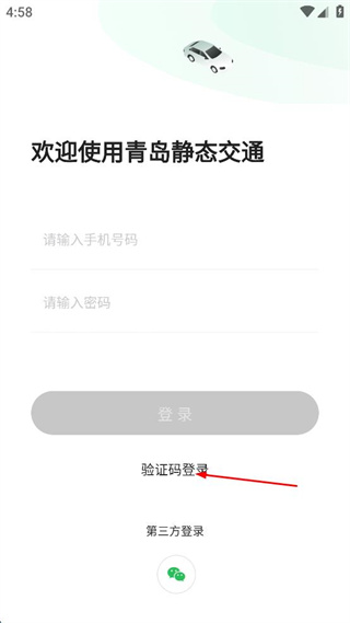 1、打開青島靜態(tài)交通軟件,點(diǎn)擊驗(yàn)證碼登錄。