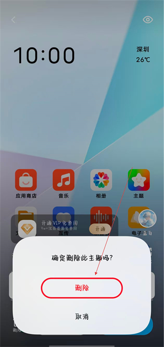 4、在提示框中,點(diǎn)擊刪除按鈕,即可刪除該下載的主題。
