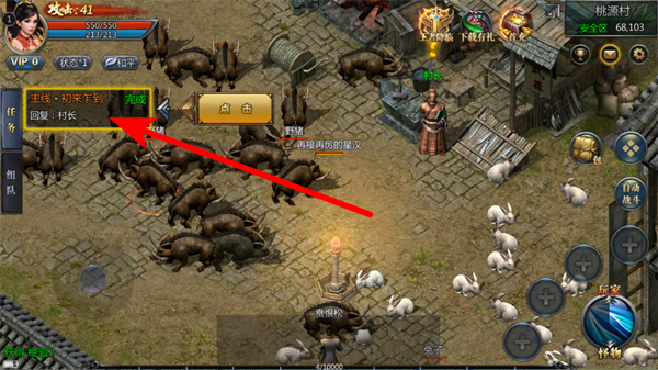 2、在游戲主場(chǎng)景中,跟隨自動(dòng)尋路提示,找到助手小敏,完成主線任務(wù)初來乍到。