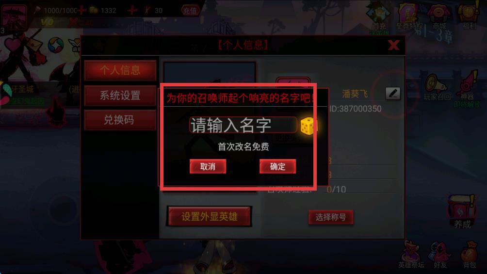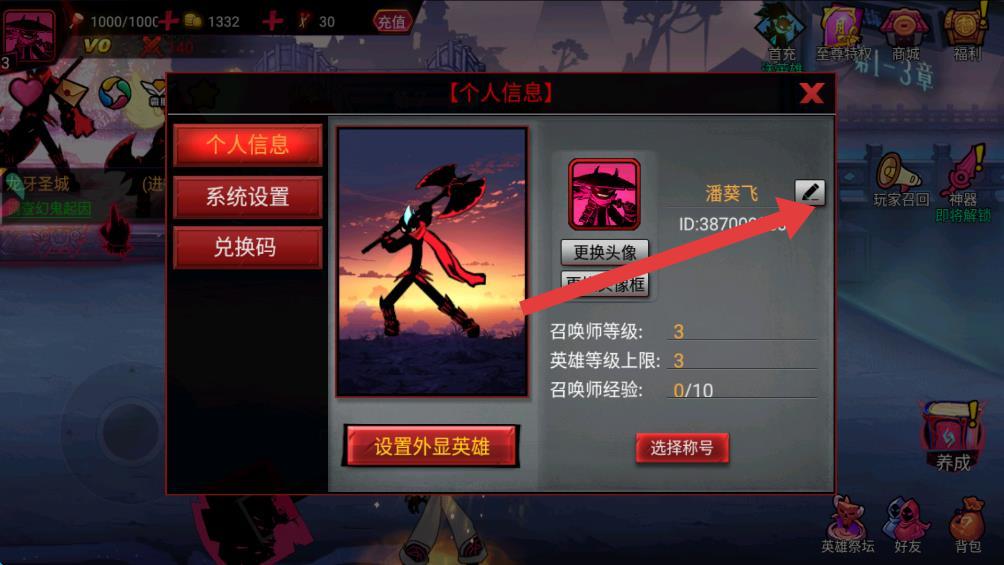 2、在游戲主界面左上角,點擊帶有角色頭像的區(qū)域,打開個人信息界面。