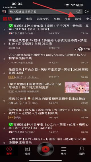 1、啟動dj多多APP,進入首頁內(nèi)在導航欄中找到并切換彩鈴的標簽。