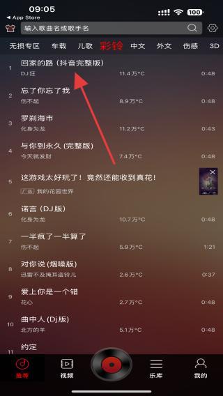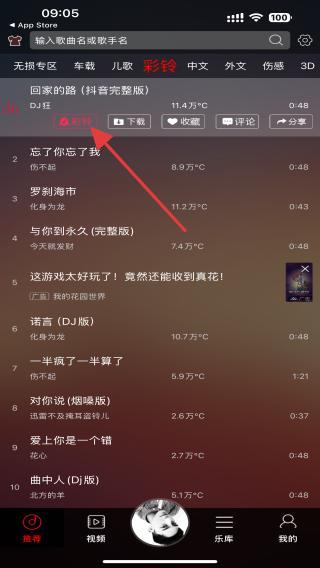 2、在彩鈴的界面內(nèi),點擊要設置鈴聲的音樂。