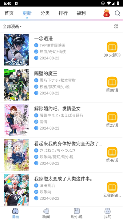 2、在更新欄目中能夠看到當(dāng)前最新更新的漫畫,所有的連載漫畫都會(huì)保持不斷的更新;