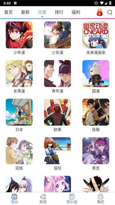 3、在分類這欄就更多了,大家喜歡看的類型都不同,你們直接在這里找不同的漫畫類型吧;