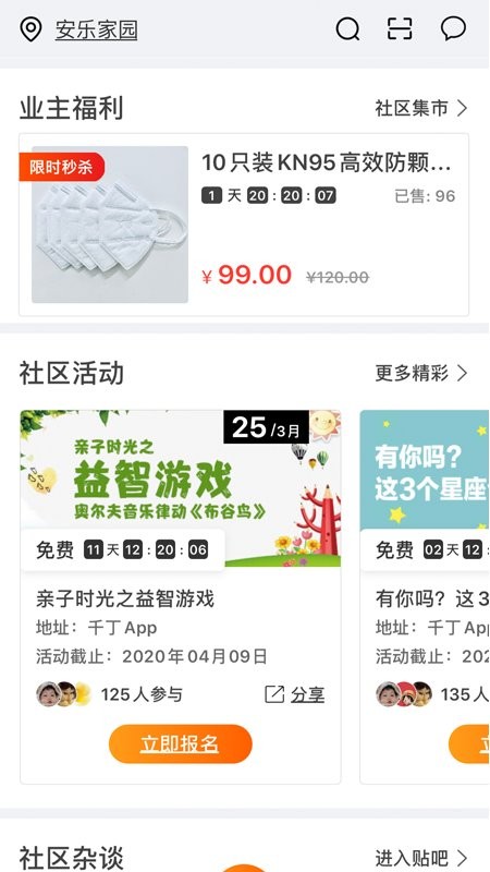 社區(qū)動態(tài)推送,不僅可以在此找到社區(qū)資訊而且社區(qū)活動可以在線報名