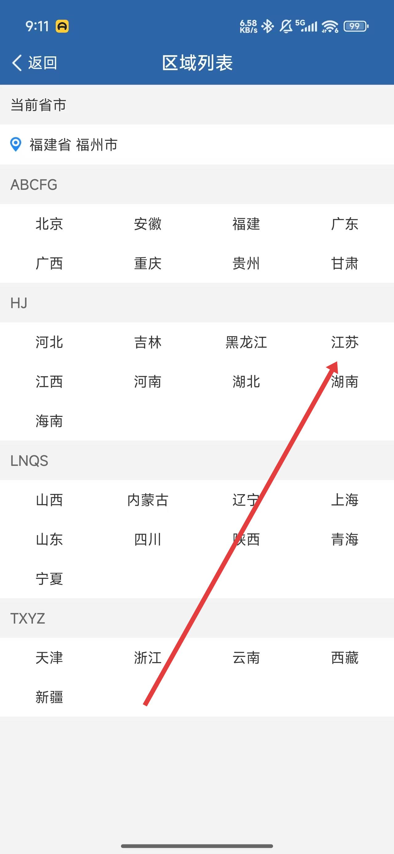 4、在區(qū)域列表中,可以點(diǎn)擊江蘇進(jìn)行所在城市的修改。