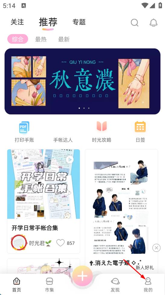 1、打開手帳類APP,點擊頁面底部“我的”選項,進入個人頁面。