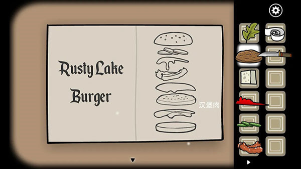 8、在茅草屋桌子上面有漢堡的擺放順序,記住之后按照順序擺放就可以了;