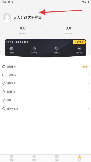 2、在我的個人頁面內,點擊大人!點這里登錄的區(qū)域。