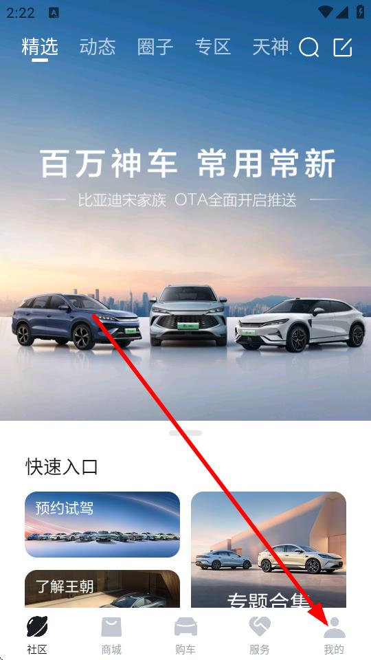 1、打開比亞迪云服務(wù)app,點擊底部導(dǎo)航欄我的進(jìn)入個人頁面。
