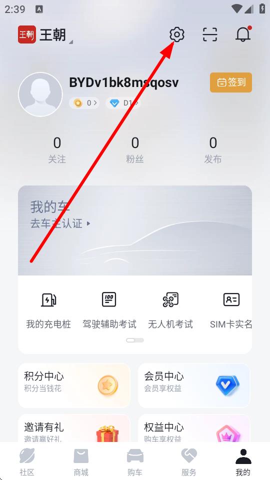 2、在個人頁面右上角點擊設(shè)置圖標(biāo),進(jìn)入設(shè)置界面。