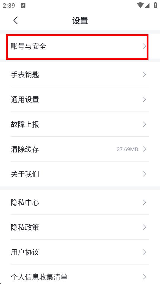 3、在設(shè)置界面中點擊賬號與安全選項。