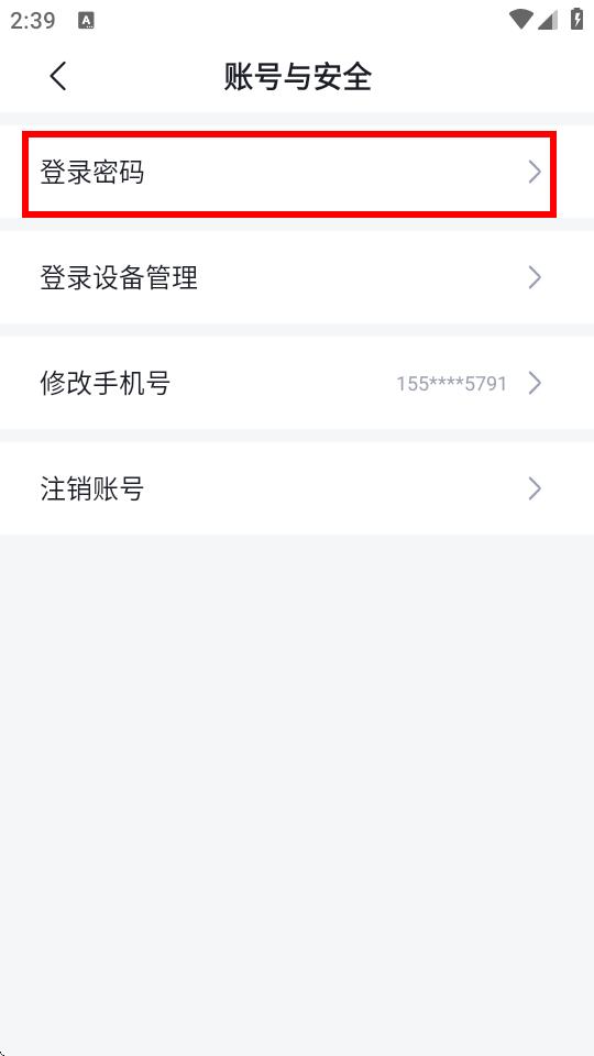 4、進(jìn)入賬號與安全頁面后,點擊登錄密碼。