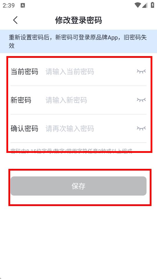 6、在修改登錄密碼頁面,輸入當(dāng)前密碼、新密碼、確認(rèn)密碼,點擊保存,即可完成密碼修改。