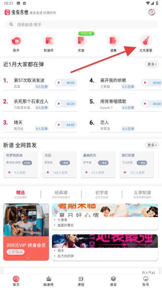 1、啟動(dòng)蟲(chóng)蟲(chóng)吉他app,在首頁(yè)內(nèi)點(diǎn)擊尤克里里的功能按鈕。