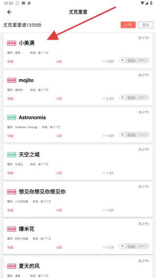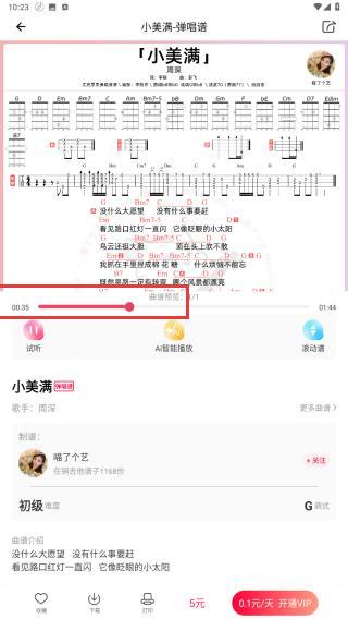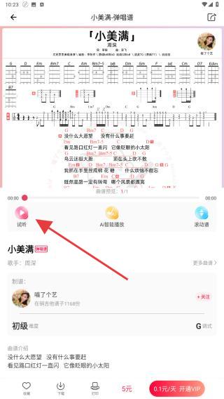 3、點(diǎn)擊歌曲后,會(huì)彈出樂(lè)譜,用戶(hù)可點(diǎn)擊試聽(tīng)的功能按鈕。