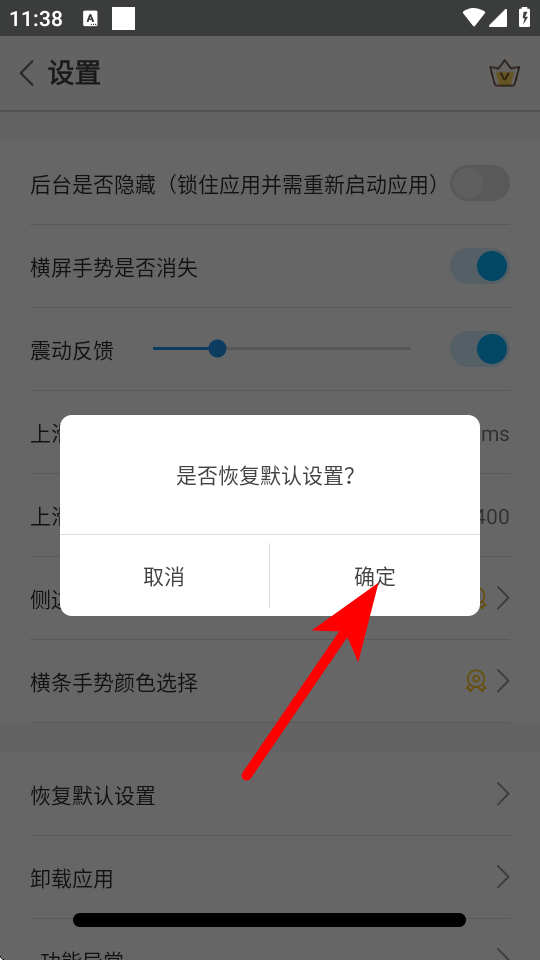 4、此時會彈出確認窗口,點擊確定按鈕,即可將全面屏設(shè)置恢復(fù)到默認模式。