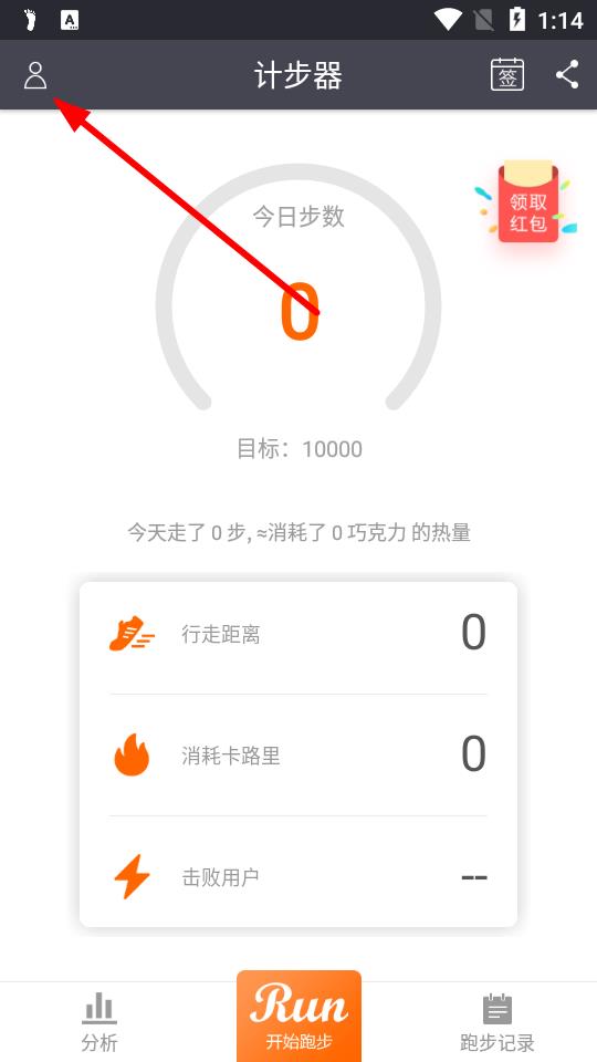 1、打開嘀嗒計步器app,點擊界面左上角的人像圖標,進入個人中心頁面。