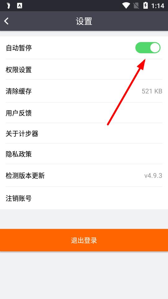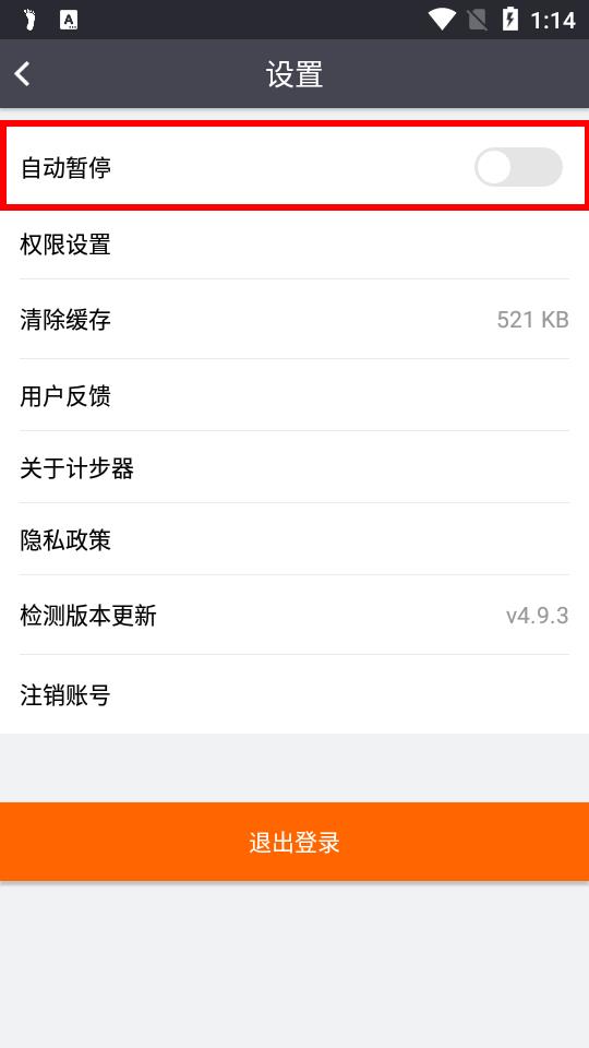 3、在設(shè)置界面里,找到自動暫停選項,當前展示關(guān)閉狀態(tài)。