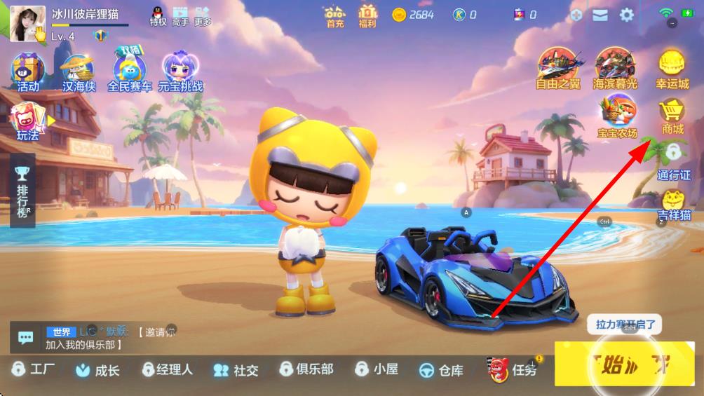 1、進入游戲主界面后,點擊右上方的商城圖標進入商城頁面。