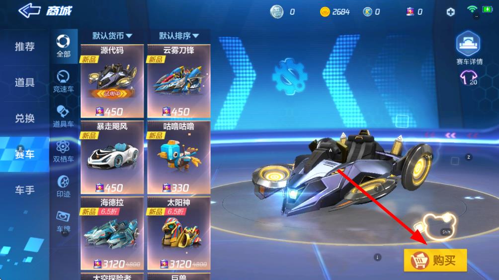 3、選中想要購買的賽車后,確認無誤后點擊右下方的購買按鈕,按照提示完成支付操作,即可成功購入賽車。