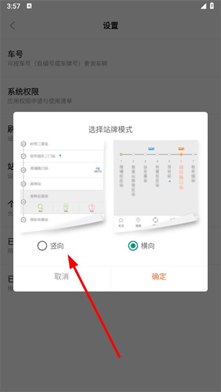 4、在彈出的選擇站牌模式窗口中,選擇豎向或橫向模式,點擊確定按鈕即可完成切換。