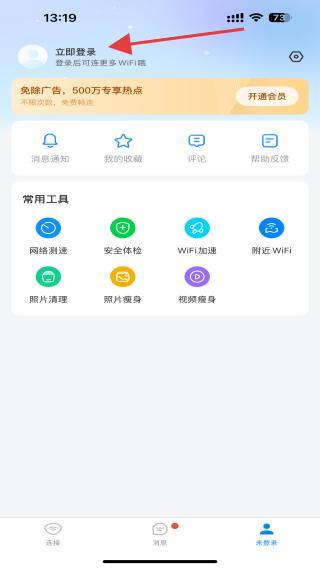 2、在我的頁面中,點擊頂部立即登錄的區(qū)域,進入登錄驗證頁面。