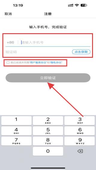 3、在此頁面,輸入手機號,點擊獲取驗證碼,勾選底部我已閱讀并同意用戶服務協(xié)議及隱私協(xié)議再點擊登錄。