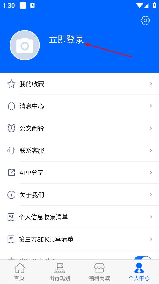 2、在個人中心頁面,點擊“立即登錄”按鈕,進入登錄界面。