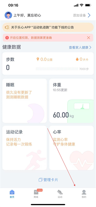 1、打開樂心健康A(chǔ)PP,點擊底部導航欄我的選項。