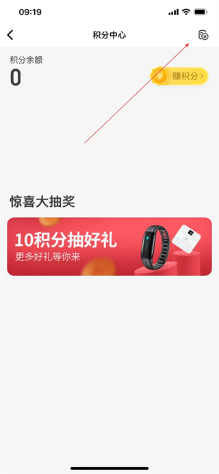 3、在積分中心頁面,點擊右上角的收支記錄圖標。