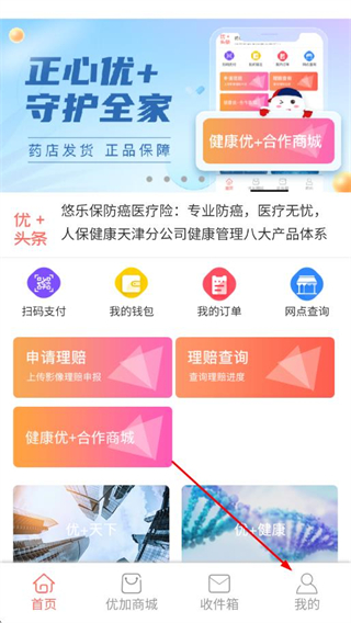 1、打開健康優(yōu)加app,點擊底部導(dǎo)航欄中的我的選項。