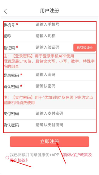 4、輸入手機號、昵稱、驗證碼等信息,勾選用戶協(xié)議,點擊立即注冊。