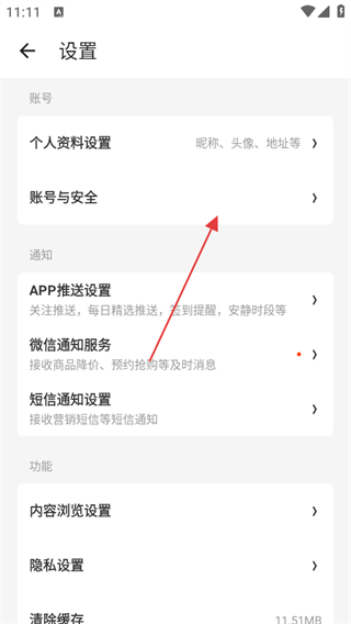 3、在設(shè)置界面里,瀏覽功能選項(xiàng),點(diǎn)擊賬號(hào)與安全選項(xiàng)。
