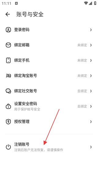 4、在賬號(hào)與安全頁面中,點(diǎn)擊注銷賬號(hào)。