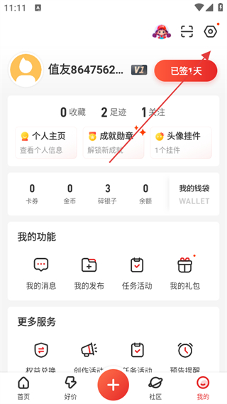 2、在我的頁面右上角,點(diǎn)擊齒輪形狀的設(shè)置圖標(biāo)。